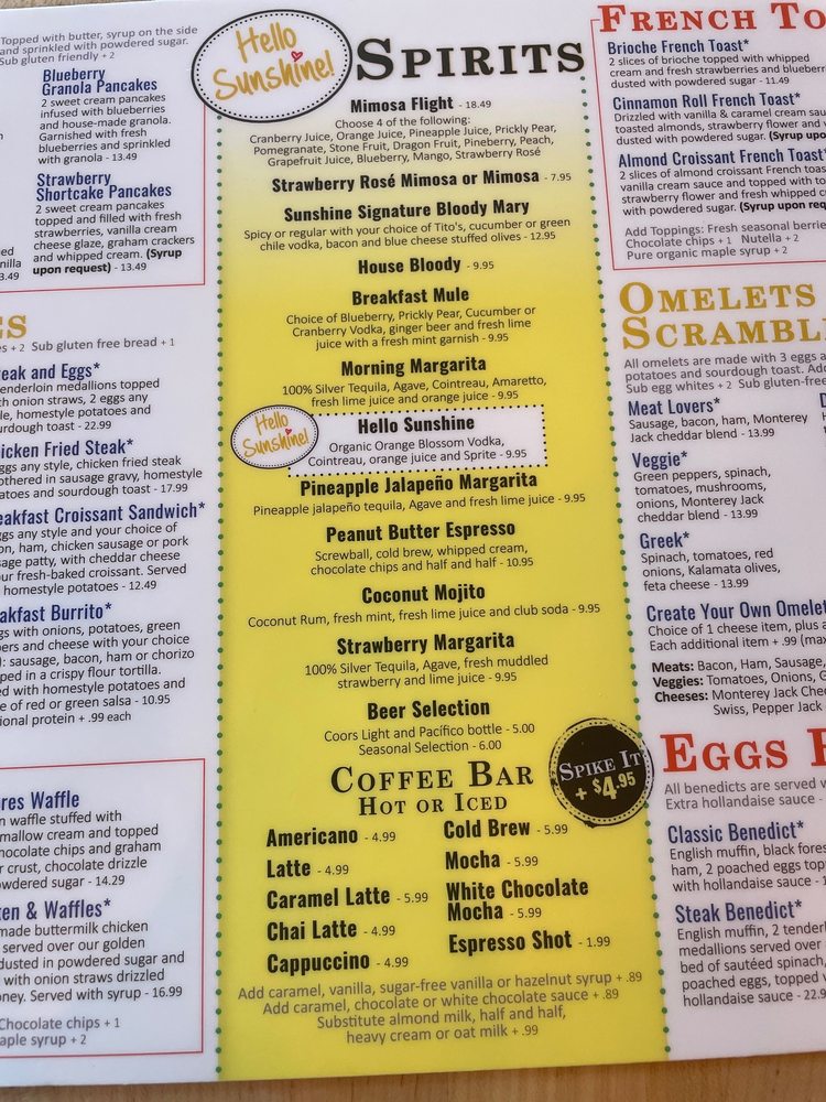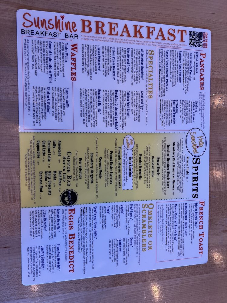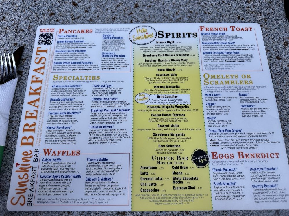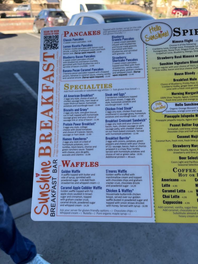Sunshine Breakfast Bar offers a variety of dining utilities, including delivery, takeout, and reservations. They cater to a diverse range of dietary preferences, with vegan and vegetarian options available. The restaurant is wheelchair accessible and offers outdoor seating, making it a casual yet trendy spot for breakfast or brunch. Customers praise the excellent service and delicious food offerings, such as the Denver Omelette, Waffles, and various Benedict options. The atmosphere is lively, and the waitlist system helps manage the crowd efficiently. With prompt service and tasty dishes like Lemon Ricotta Pancakes, Sunshine Breakfast Bar is a favorite among patrons. Whether you're looking for a leisurely brunch or a quick bite, this women-owned establishment in Phoenix, AZ, is worth a visit.